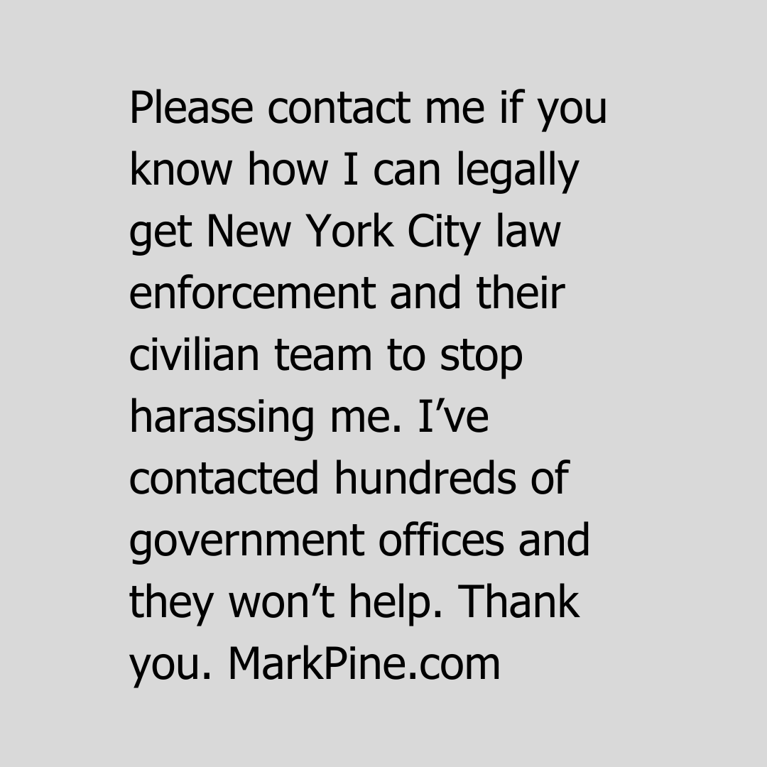 If anyone knows how I can legally get the NYPD New York City police to stop harassing me, please let me know.