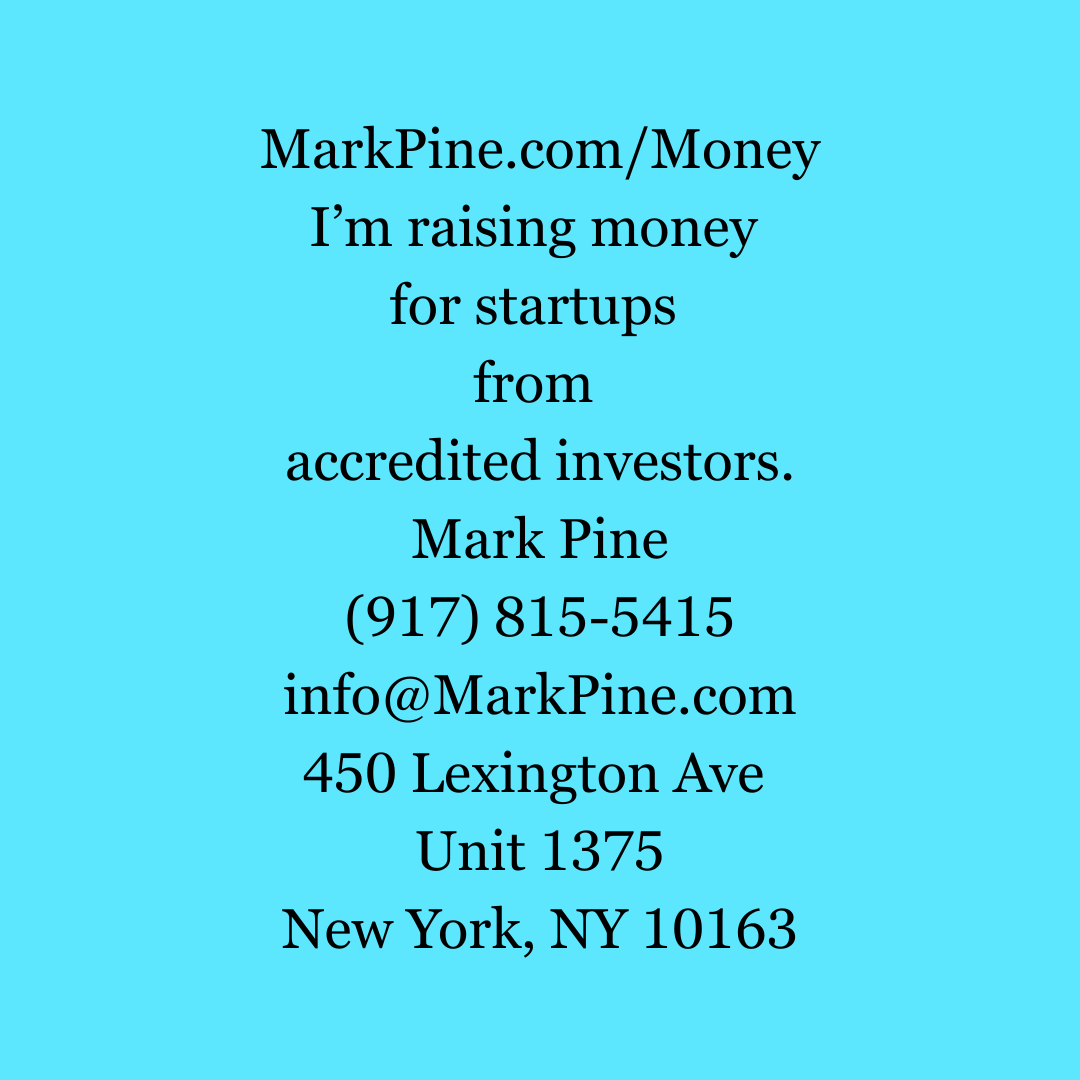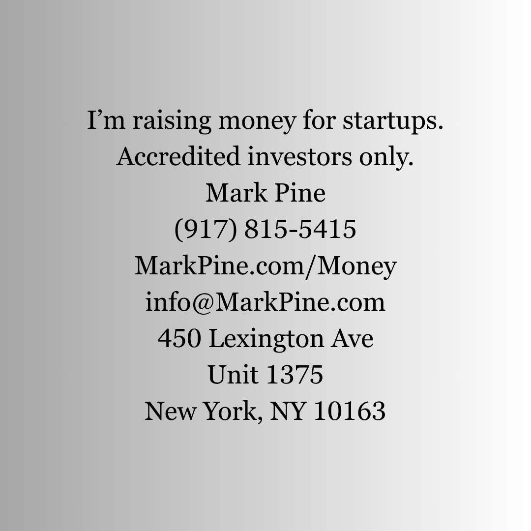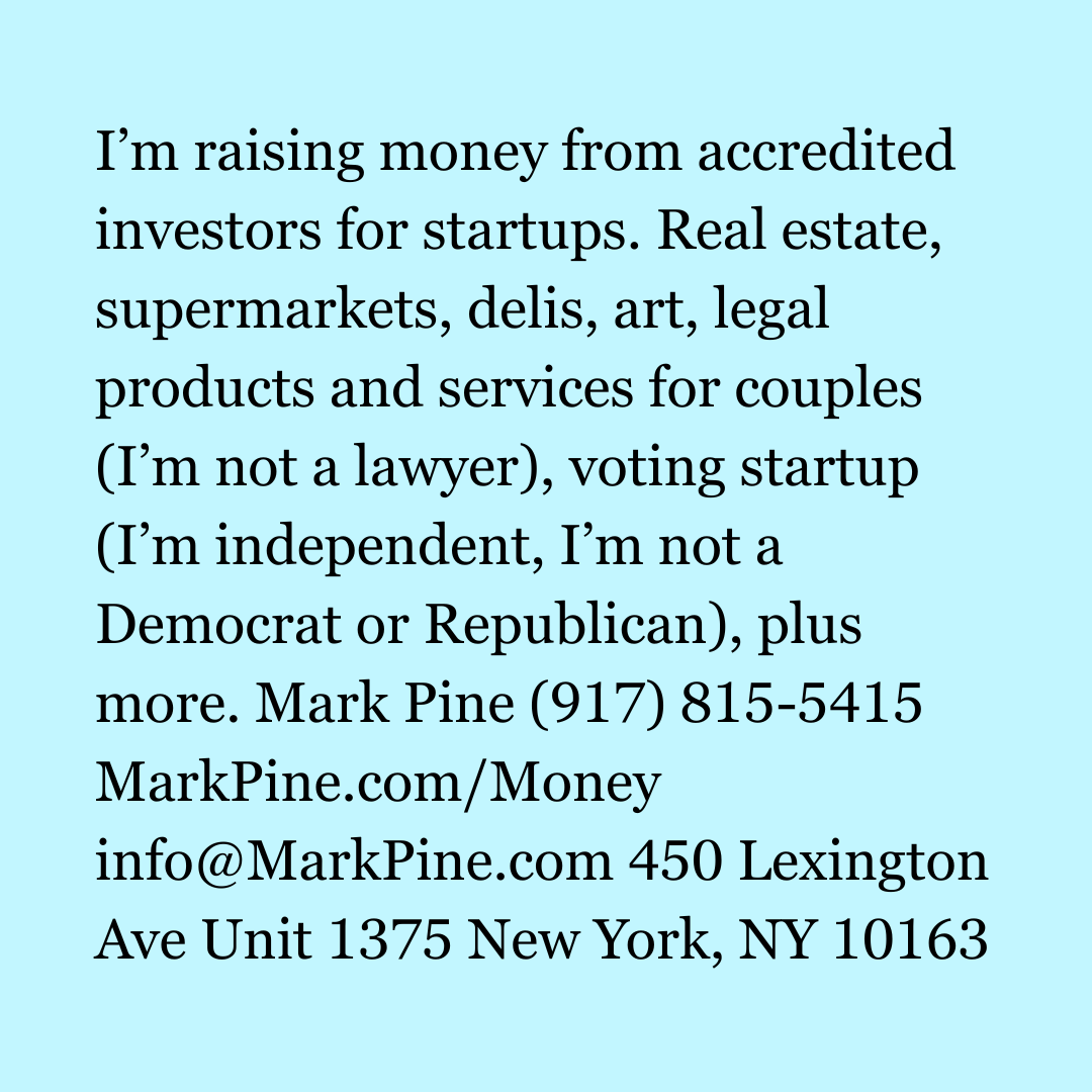 Other startups I’m working on include art, climate change, real estate, entertainment, local food, retail food, supermarkets, and many more.