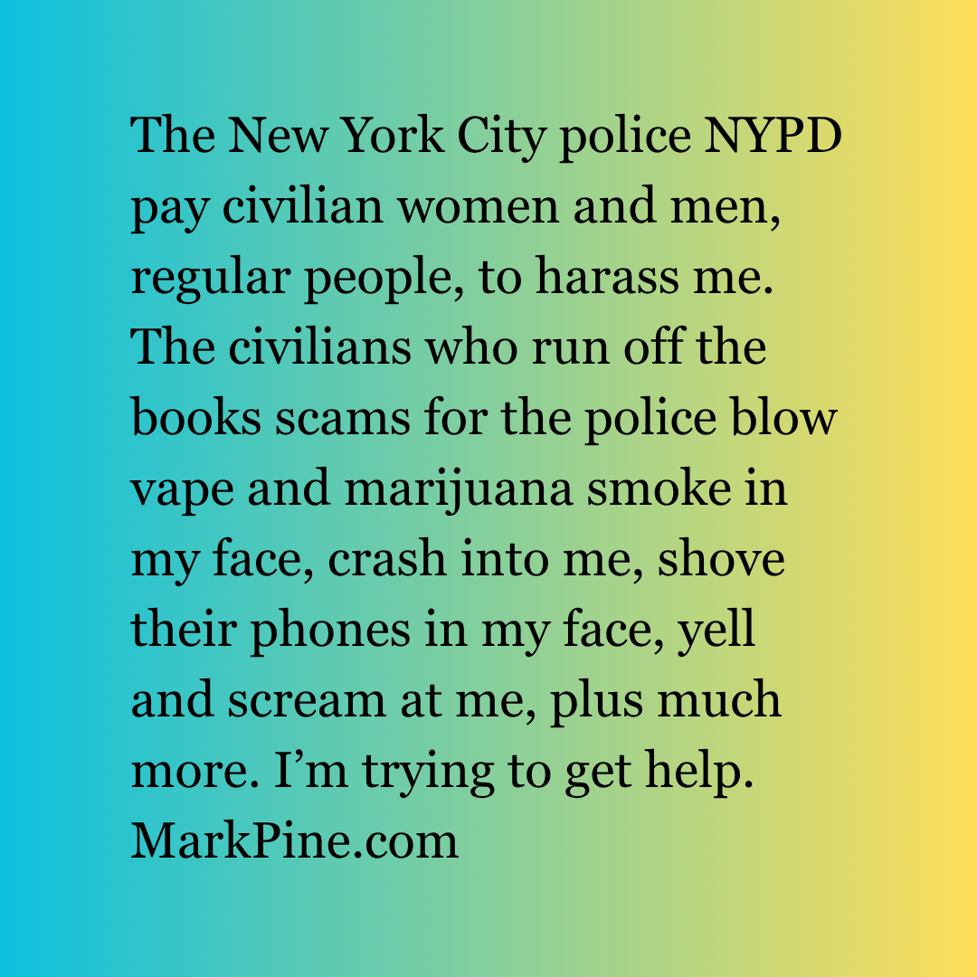 I’m getting the word out about startups I’m trying to launch and the New York City police NYPD harassing me.