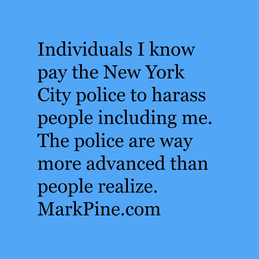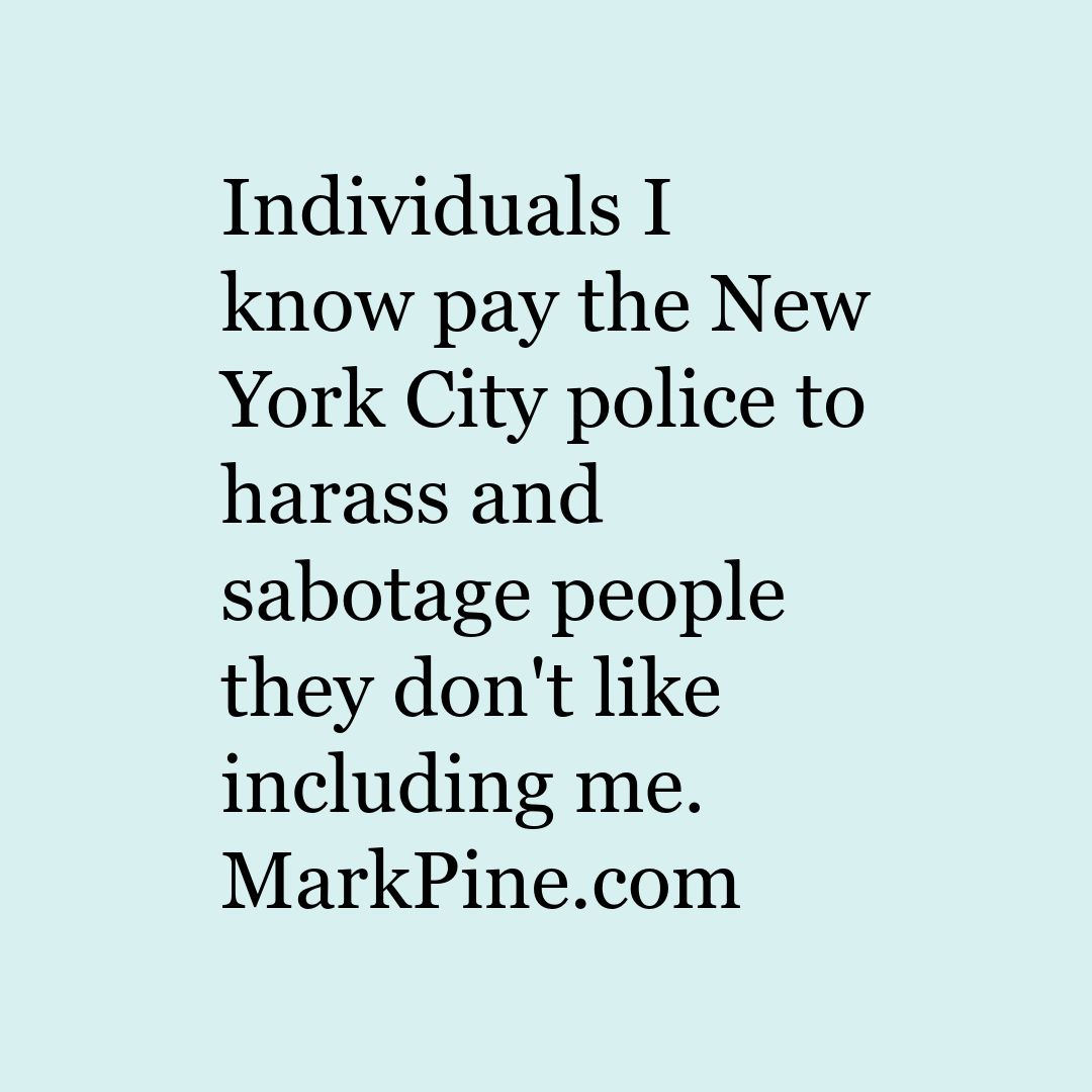 Men I know pay the New York City police to harass several people including me without any legitimate reason.