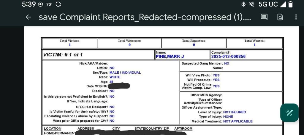 I have a PDF of more than 100 pages from NYPD headquarters 1PP that I will submit with my final request to drop Spring 2025 in September 2025.