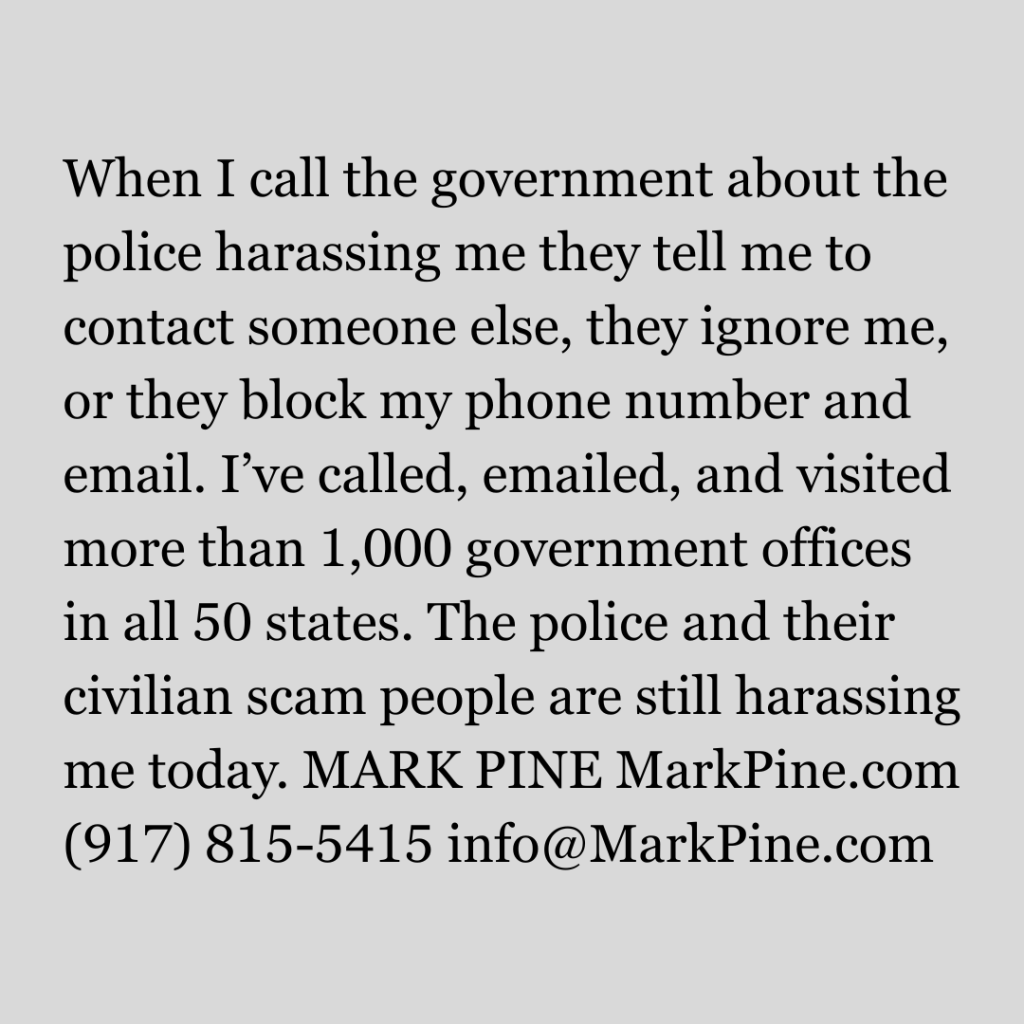 Who is going to invest with law enforcement harassing me and telling everyone not to help me?